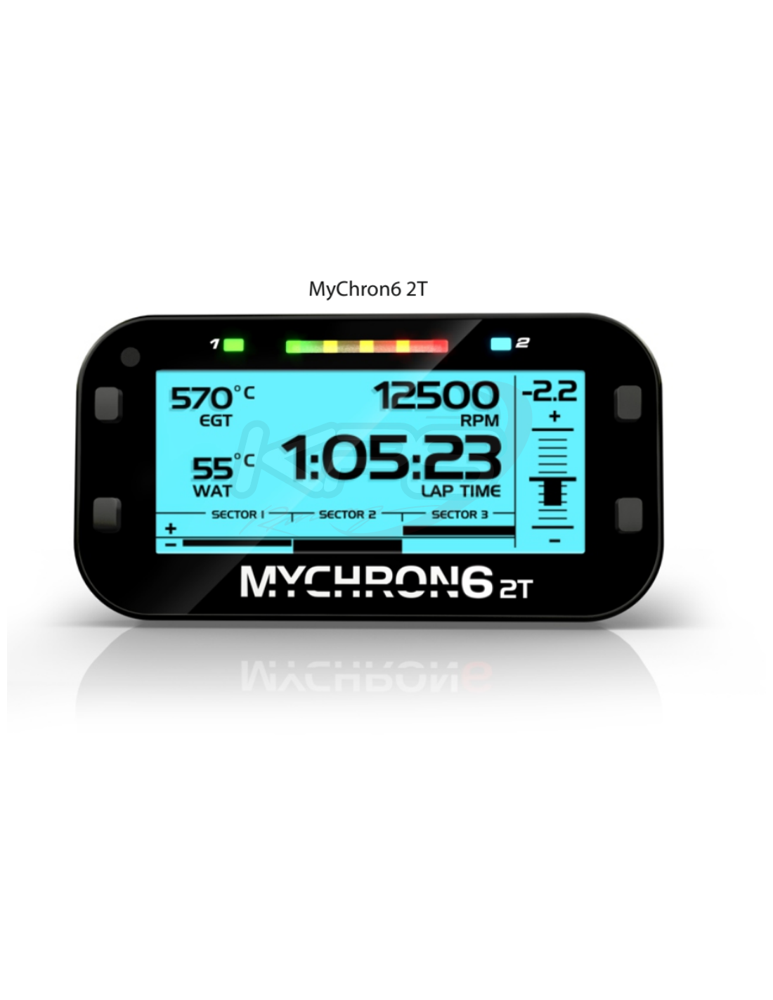 Nuevo Mychron 6 2T. -Diseño completamente actualizado. -Batería integrada. -Bluetooth. -Además de mostrar todos sus datos, presenta todas las ventajas de un nuevo concepto GPS además de muchas nuevas funciones, diseñadas para proporcionar la información más completa y fiable. Tiempos parciales de la vuelta, velocidad, RPM y una temperatura así como posición en la pista, aceleración y mucho más.